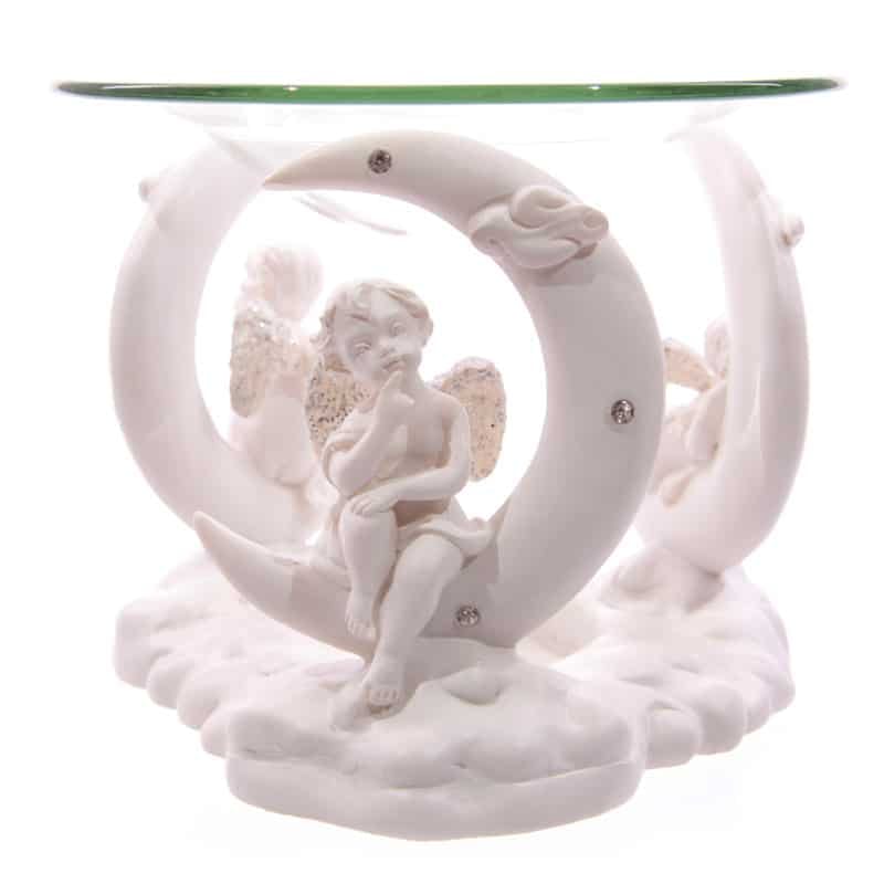 Decorative Cherub Oil & Wax Burner with Glass Dish